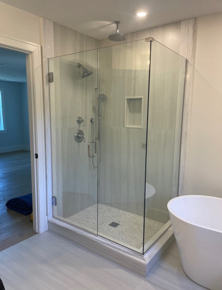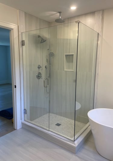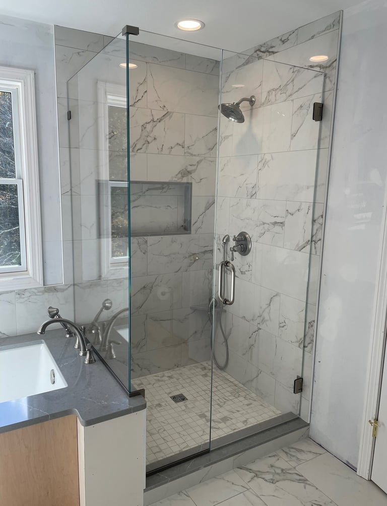 We are a family-owned growing business with 20 plus years of glass glazing, designing, fabricating and installing. We service anywhere from the Cape Cod coasts and the Boston cityscapes of Massachusetts all the way up to the Maine lakes and New Hampshire mountains. We have serviced many customers in the North Shore of MA and coastal NH, leaving us with a chapter book of loyal customers and available testimonials from each area. We install custom fabricated glass enclosures, shower doors, mirrors, windows, and much more even including commercial projects. Let us help you bring your vision to life with your next project!